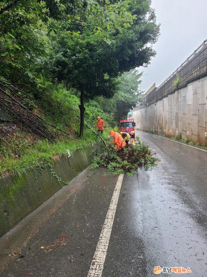 ÀÌ¿¡ ±Í¼Ò ÁßÀÌ´ø ±¤¾ç119¾ÈÀü¼¾ÅÍ ´ë¿øµéÀº 1Â÷ ÇöÀåȰµ¿À» ¸¶¹«¸®ÇÏ°í µ¹¾Æ¿À´Â ±æ¿¡µµ ÁֹεéÀÇ ºÒÆíÇÔÀ» ÇØ¼ÒÇϱâ À§ÇØ ¿ìõ¿¡µµ üÀÎÅé, °¥°í¸® µî ±¸Á¶ Àåºñ¸¦ ÀÌ¿ëÇÏ¿© ÃÖ¼±À» ´ÙÇØ µµ·Î À§ ³ª¹«¸¦ Á¦°ÅÇÏ¿© ¾ÈÀüÁ¶Ä¡¸¦ ÇÏ¿´´Ù.