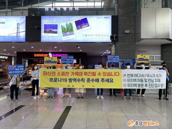 ¼øÃµ½Ã¿Í Àü³²µµ´Â ¹æ¹®°´µé¿¡°Ô ¹æ¿ª ¸¶½ºÅ©(KF94)¿Í È«º¸¹°(Ã¥ÀÚ, ºÎä) µîÀ» ¹èºÎÇÏ¸é¼ »çȸÀû °Å¸®µÎ±â Áؼö, Ÿ Áö¿ª ¹æ¹® ÀÚÁ¦ ¹× ºÒ°¡ÇÇÇÑ Å¸Áö¿ª ¹æ¹® ½Ã Áø´Ü°Ë»ç ¹Þ±â µîÀ» ÁßÁ¡ÀûÀ¸·Î È«º¸ÇÏ¿´´Ù.