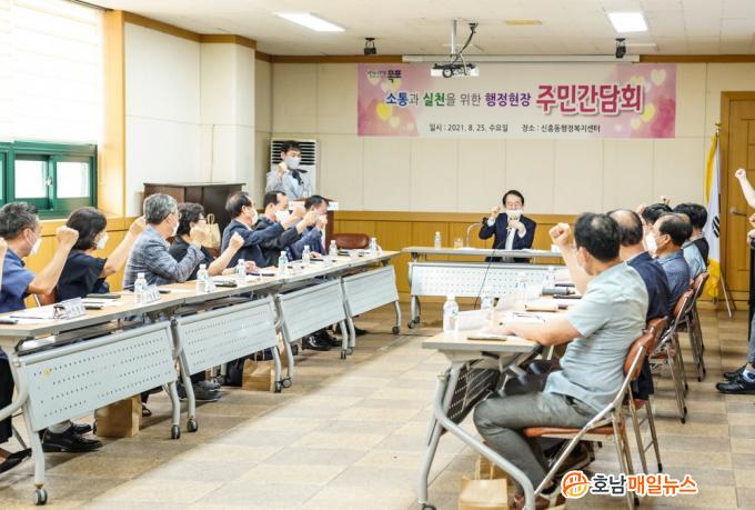 ±è ½ÃÀåÀº ½ÅÈﵿ Á÷¿øµéÀ» °Ý·ÁÇϰí, µ¿ÇàÁ¤º¹Áö¼¾Å͸¦ ¹æ¹®ÇÑ ½Ã¹Îµé°ú Àλ縦 ³ª´©¸ç µ¿ÀåÀ¸·Î¼ÀÇ ÇϷ縦 ¾Ë·È´Ù.