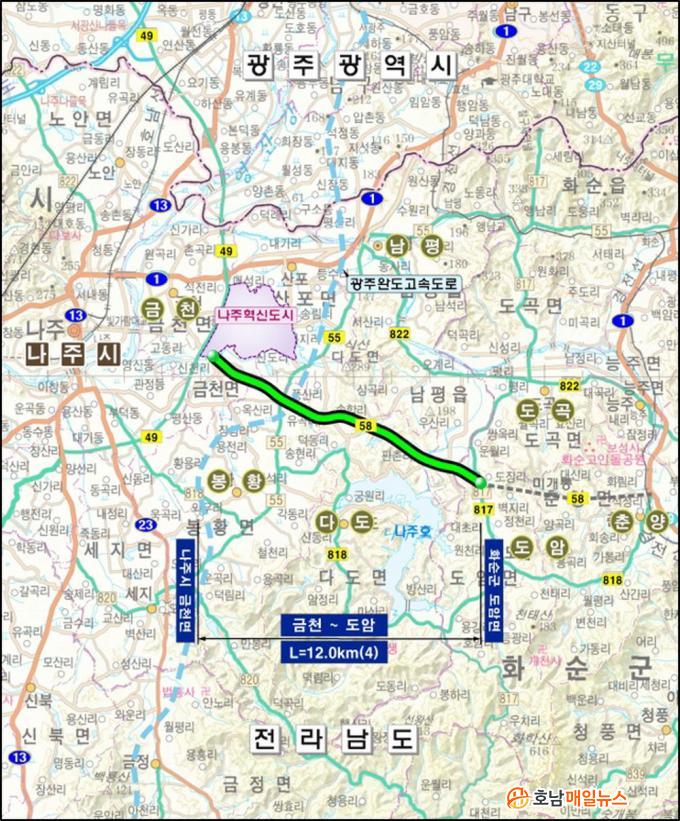 ³ªÁÖ½Ã(½ÃÀå °ÀαÔ)´Â Áö³ 24ÀÏ ¡®³ªÁÖ ±Ýõ¸é ~ ȼø µµ¾Ï¸é¡¯ ÃÑ 12km±¸°£, ±¹Áöµµ 58È£¼± 4Â÷¼± µµ·Î ½Å¼³»ç¾÷ÀÌ ±âȹÀçÁ¤ºÎ ¿¹ºñŸ´ç¼º Á¶»ç¸¦ ÃÖÁ¾ Åë°úÇß´Ù°í 26ÀÏ ¹àÇû´Ù.