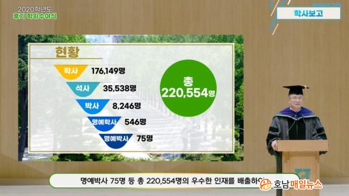 Àü³²´ë´Â 8¿ù 26ÀÏ ¡®Äڷγª19¡¯ È®»ê¹æÁö¸¦ À§ÇØ ¿Â¶óÀÎÀ¸·Î ÁøÇàµÈ 2020Çг⵵ Èıâ ÇÐÀ§¼ö¿©½Ä¿¡¼ Çлç 1,240¸í, ¼®»ç 458¸í, ¹Ú»ç 139¸í µî ¸ðµÎ 1,837¸í¿¡ ´ëÇØ ÇÐÀ§¸¦ ¹ß±ÞÇϰí, À̵éÀÇ ¾Õ³¯¿¡ ¹«±ÃÇÑ ¹ßÀüÀÌ Àֱ⸦ ±â¿øÇß´Ù.