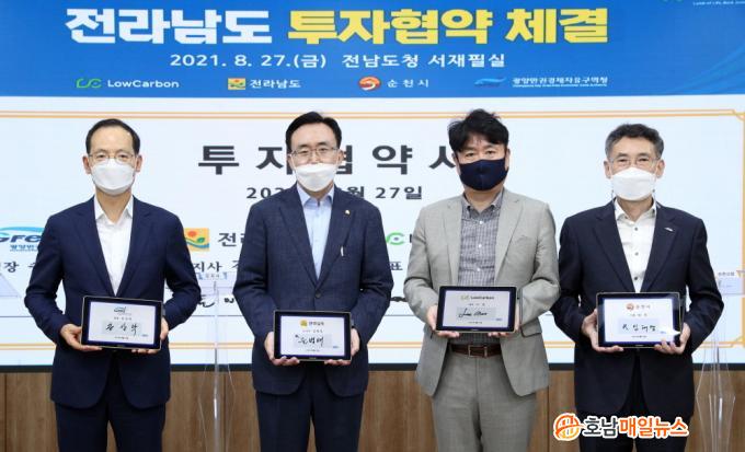 À̳¯ Àü³²µµÃ» ¼ÀçÇʽǿ¡¼ ¿¸° Çù¾à½Ä¿¡´Â À±º´Å Àü³²µµ Á¤¹«ºÎÁö»ç, ÀÌö ·Î¿ìÄ«º» ´ëÇ¥ÀÌ»ç, ÀÓ俵 ¼øÃµºÎ½ÃÀå, ¼Û»ó¶ô ±¤¾ç¸¸±Ç°æÁ¦ÀÚÀ¯±¸¿ªÃ»ÀåÀÌ Âü¼®Çß´Ù.