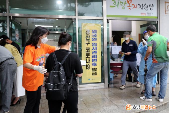 ÀÌ¿¡ 15°³±¹ 74¸íÀÌ ¸ðÀÎ ±¤»ê±¸ ¿Ü±¹ÀÎÁֹΠÀç´É±âºÎ´Üµµ ÆÈÀ» °È¾îºÙ¿´´Ù. Áö³ 23ÀϺÎÅÍ 27ÀϱîÁö ±¤»ê±¸º¸°Ç¼Ò¿¡¼ ½Ç½ÃÇÑ ¹Ìµî·Ï ¿Ü±¹ÀÎÀÇ Äڷγª19 ¹é½Å Á¢Á¾À» À§ÇÑ °ü¸®¹øÈ£ ¹ß±ÞÀ» Áö¿øÇÑ °Í.