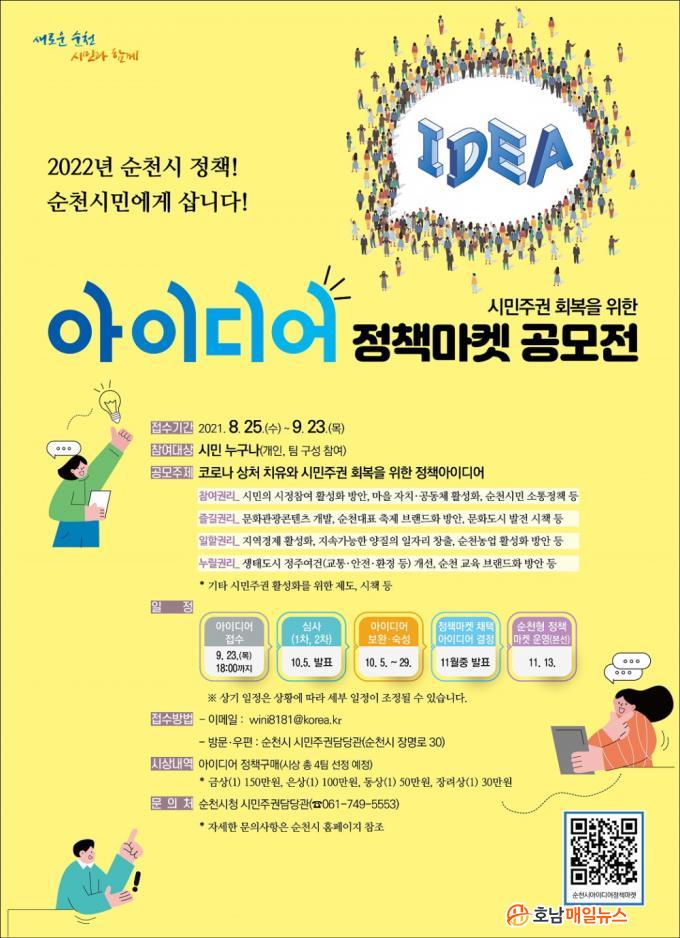 ÀÀ¸ðÈñ¸ÁÀÚ´Â ¼øÃµ½Ã ȨÆäÀÌÁö¿¡¼ ½Åû¼½ÄÀ» ³»·Á¹Þ¾Æ Á¤Ã¥Á¦¾È ³»¿ëÀ» ÀÛ¼ºÇÑ ÈÄ 9¿ù 23ÀϱîÁö ¼øÃµ½Ã ½Ã¹ÎÁֱǴã´ç°ü¿¡°Ô ¿ìÆíÀ̳ª ÀüÀÚ¿ìÆí(wini8181@korea.kr)À¸·Î Á¦ÃâÇÏ¸é µÈ´Ù.