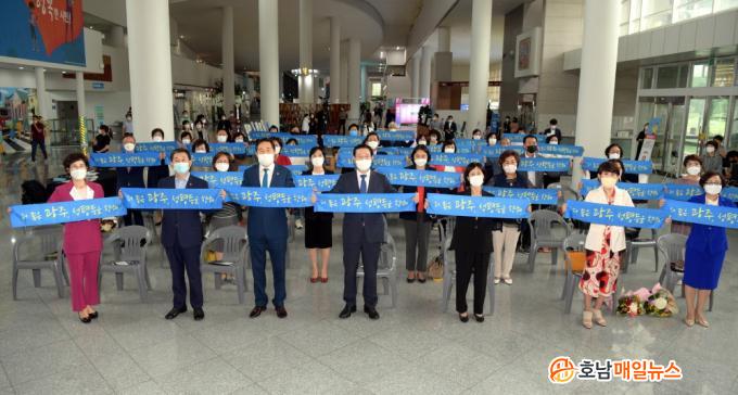 ¡®´õ ÁÁÀº ±¤ÁÖ, ¼ºÆòµîÀ» ÇâÇØ¡¯ ¶ó´Â ½½·Î°ÇÀ¸·Î ÁøÇàµÇ´Â À̹ø ±â³äÇà»ç¿¡´Â À̿뼷 ½ÃÀå, ±è¿ëÁý ½ÃÀÇȸ ÀÇÀå, Á¤¼ø¾Ö ½ÃÀÇȸ ºÎÀÇÀå, ½Å¼öÁ¤ ½ÃÀÇȸ ȯ°æº¹ÁöÀ§¿øÀå, ±è¶õÈñ ±¤ÁÖÀü³²¿©¼º´Üü¿¬ÇÕ ´ëÇ¥, °û¼±Èñ ±¤ÁÖ¿©¼º´ÜüÇùÀÇȸÀå, ±è¼±¿Á ±¤ÁÖYWCA ȸÀå µîÀÌ Âü¼®Çß´Ù.