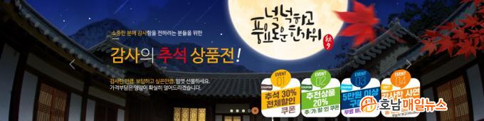 À̹ø ±âȹÀüÀº Áö³ 8¿ù 25ÀϺÎÅÍ ½ÃÀÛÇßÀ¸¸ç 9¿ù 14ÀϱîÁö ÁøÇàµÈ´Ù. Ãß¼®À» ¸Â¾Æ °¨»çÀÇ ¸¶À½À» ³ª´ ¼ö ÀÖ´Â ¿µ¾Ï¸Å·ÂÇÑ¿ì, ¹è, ¸á·Ð, ¹«È°ú µî ¿µ¾Ï±º ´ëÇ¥ ³óƯ»ê¹° ¼±¹°¼¼Æ®·Î ±¸¼ºµÇ¾î ÀÖ´Ù.