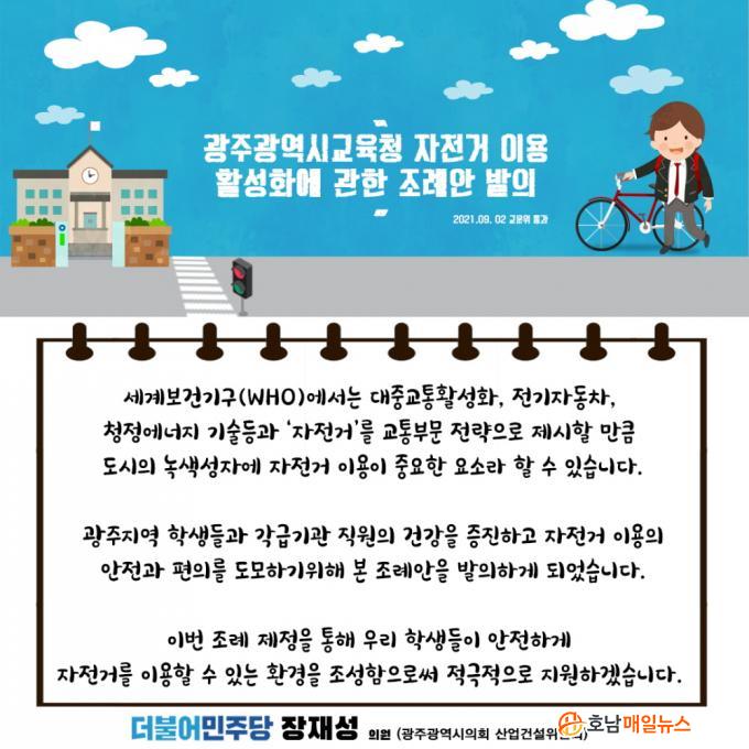 ÀåÀ缺 ÀÇ¿øÀº ¡°±¤ÁÖÁö¿ª Çлýµé°ú °¢±Þ±â°ü Á÷¿øÀÇ °Ç°À» ÁõÁøÇϰí ÀÚÀü°Å ÀÌ¿ëÀÇ ¾ÈÀü°ú ÆíÀǸ¦ µµ¸ðÇϱâ À§ÇØ º» Á¶·Ê¾ÈÀ» ¹ßÀÇÇß´Ù¡±°í Á¦Á¤ ÃëÁö¸¦ ¼³¸íÇß´Ù.