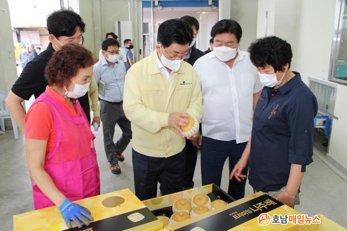 °ÀÎ±Ô ³ªÁÖ½ÃÀåÀº 2ÀÏ APC¼±°úÀå°ú »êÆ÷¡¤±Ýõ¡¤¿µ»êÆ÷¡¤ºÀȲ³óÇù ¼±°úÀå¿¡¼ ¹è À¯Åë Çö¾È°ú ÀÛ¾÷ ÇöÀåÀ» Á¡°ËÇÏ°í °ü°èÀÚµéÀÇ ³ë°í¸¦ °Ý·ÁÇß´Ù.