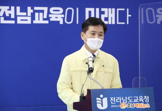 Àå¼®¿õ Àü¶ó³²µµ±³À°°¨Àº 9¿ù 6ÀÏ(¿ù) ¿ÀÈÄ Ã»»ç 2Ãþ ±âÀڽǿ¡¼ ºñ´ë¸é ±ä±Þ ºê¸®ÇÎÀ» °®°í, À̰°Àº ³»¿ëÀÇ Çб³ ³» Äڷγª19 °¨¿°È®»ê ¹æÁö ±ä±Þ´ëÃ¥À» ¹ßÇ¥Çß´Ù.