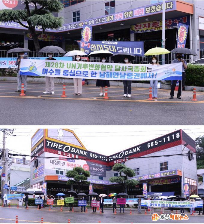 [È£³²¸ÅÀÏ´º½º] ¿©¼ö½Ã ±âÈÄ»ýŰú Á÷¿øµéÀÌ 6ÀÏ ¿ÀÀü 8½ÃºÎÅÍ ÇÑ ½Ã°£ µ¿¾È ½ÖºÀ»ç°Å¸®¿¡¼ 2023³â °³ÃÖ¿¹Á¤ÀÎ Á¦28Â÷ UN±âÈĺ¯ÈÇù¾à ´ç»ç±¹ÃÑȸ(COP28) ³²Çؾȳ²Áß±Ç À¯Ä¡¸¦ À§ÇØ °Å¸® Ä·ÆäÀÎÀ» ¹úÀ̰í ÀÖ´Ù.