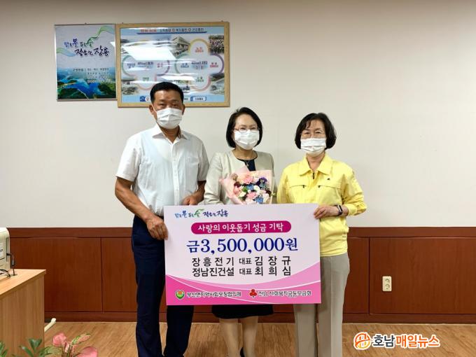»ç¶ûÀÇ ÀÌ¿ôµ½±â ¼º±Ý ±âºÎÀÚ ÀåÈïÀü±â ´ëÇ¥ ±èÀå±Ô, Á¤³²Áø°Ç¼³ ´ëÇ¥ ÃÖÈñ½É ºÎºÎ´Â Áö¿ª ³» Àú¼Òµæ ¾î¸£½ÅµéÀ» À§ÇØ ¼º±Ý 350¸¸ ¿øÀ» Àü´ÞÇß´Ù.