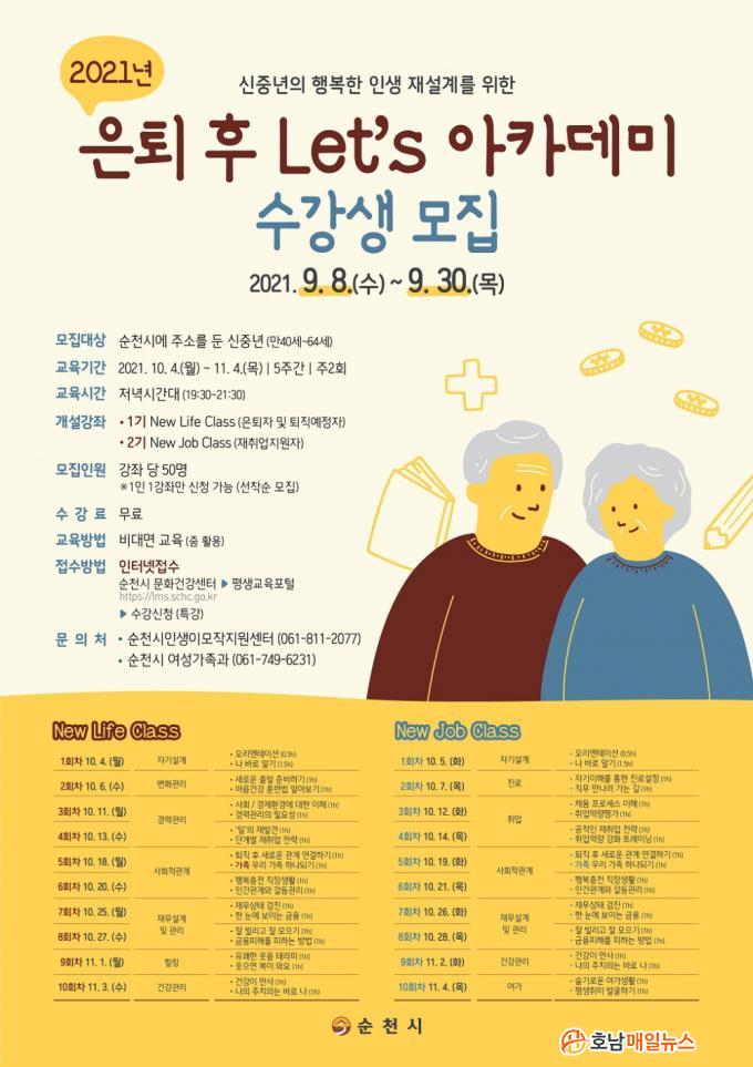 ¼øÃµ½Ã ÀλýÀ̸ðÀÛÁö¿ø¼¾ÅÍ¿¡¼ ÁøÇàÇÏ´Â À̹ø ¾ÆÄ«µ¥¹Ì´Â 10¿ù 4ÀϺÎÅÍ 11¿ù 4ÀϱîÁö ÃÑ 10ȸ¿¡ °ÉÃÄ ³ª ¹Ù·Î ¾Ë±â, »õ·Î¿î Ãâ¹ß ÁغñÇϱâ, ¸¶À½°Ç° ÈÆ·Ã¹ý, °Ç°°ü¸®, À繫»óÅ ¹× °ü¸®, ¼º°øÀûÀÎ ÀçÃë¾÷ Àü·« µîÀ» ³»¿ëÀ¸·Î ÀºÅðÀÚ ¹× ÅðÁ÷¿¹Á¤ÀÚ ±³À°(New Life Class)°ú ÀçÃë¾÷Áö¿øÀÚ ±³À°(New Job Class) 2°³ °úÁ¤À¸·Î ³ª´² ¿î¿µÇÑ´Ù.