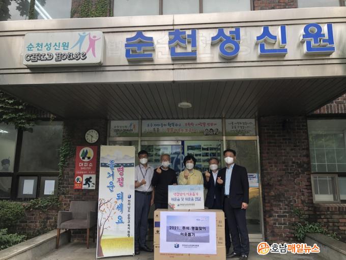 [È£³²¸ÅÀÏ´º½º] ¼øÃµ±³À°Áö¿øÃ»(±³À°Àå ÀÌ¿ë´ö)Àº ´Ù°¡¿À´Â Ãß¼® ¸íÀýÀ» ¸Â¾Æ ÀÌ¿ô°ú ÇÔ²² ÇÏ´Â µû¶æÇÑ ¸íÀý ºÐÀ§±â Á¶¼ºÀ» À§ÇØ »çȸº¹Áö½Ã¼³À» ¹æ¹®ÇØ À§¹®±Ý°ú À§¹®¹°Ç°À» Àü´ÞÇϰí, °ü³» Çб³ Çлý°¡Àå ¹× °¡Á¤À§Å¹Çлý 46¸í¿¡°Ô µû¶æÇÑ Á¤À» ³ª´©°íÀÚ ºñ´ë¸é Åùè¹è¼ÛÀ» ÀÌ¿ëÇÏ¿© ¼ÒÁ¤ÀÇ Çö¹°À» Àü´ÞÇÏ¿´´Ù.