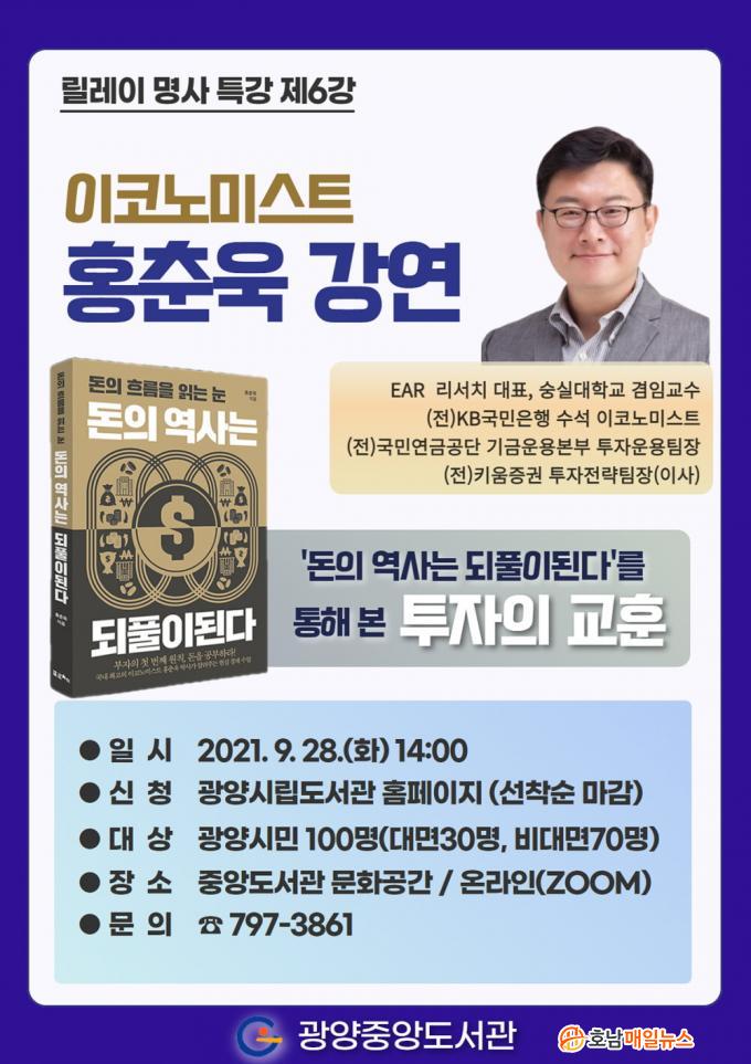 ¿©¼¸ ¹øÂ° °¿¬À» ¸ÃÀº È«Ãá¿í ¹Ú»ç´Â EAR Research ´ëÇ¥ÀÌÀÚ ¼þ½Ç´ëÇб³ ±ÝÀ¶°æÁ¦Çаú °âÀÓ±³¼ö·Î ¡¸7´ë À̽´·Î º¸´Â µ·ÀÇ ¿ª»ç¡¹, ¡¸µðÇ÷¹ ÀüÀ, ¡¸¹Ð·¹´Ï¾ó ÀÌÄÚ³ë¹Ì¼®¡¹ µîÀ» ÁýÇÊÇßÀ¸¸ç, 2016³â¿¡´Â Á¶¼±ÀϺ¸¿Í ¿¡ÇÁ¾Ø°¡À̵尡 ¡®°¡Àå ½Å·Ú¹Þ´Â ¾Ö³Î¸®½ºÆ®¡¯·Î ¼±Á¤ÇÑ ¹Ù ÀÖ´Ù.