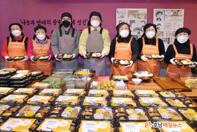 À̿뼷 ±¤ÁÖ±¤¿ª½ÃÀåµµ À̳¯ ¾ÆÄ§ Á÷Á¢ ±¤ÁÖÁÖ¸Ô¹ä µµ½Ã¶ôÀ» ¸¸µé¾î Æ÷ÀåÇϰí Â÷·®¿¡ ½Æ´Â ÀÛ¾÷À» ÇÔ²² Çϸç Äڷγª19ÀÇ Á¶¼ÓÇÑ Á¾½Ä°ú ´ë±¸½Ã¹ÎµéÀÇ °Ç°À» ±â¿øÇß´Ù.