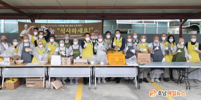 ¿ÃÇØ 6¿ùºÎÅÍ ÃßÁø ÁßÀÎ ¡®µçµçÇÑ Çѳ¢ ³ª´®¡¯ »ç¾÷Àº Äڷγª19·Î ¹«·á±Þ½Ä ¿î¿µÀÌ Àå±âȵǰí ÀÖ´Â »óȲ¿¡¼ ¸ÅÁÖ ¸ñ¿äÀÏ ¼Ò¿øÁ¤»ç µµ°è½º´Ô°ú (»ç)ÀÚºñ½ÅÇàȸ¿¡¼ °á½Ä ¿ì·Á ´ë»óÀÚ 120¸í¿¡°Ô µû¶æÇÑ ¹ä, ±¹, ¹ÝÂù µîÀ» µµ½Ã¶ô¿¡ ´ã¾Æ ¹èºÎÇÏ´Â »ç¾÷ÀÌ´Ù.