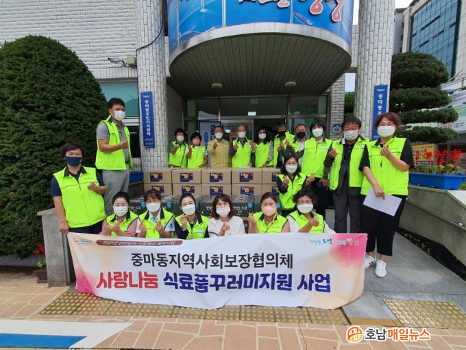 Áö¿ª¹Î 25¸íÀ¸·Î ±¸¼ºµÈ Á߸¶µ¿ Áö¿ª»çȸº¸ÀåÇùÀÇü´Â Áö¿ªÇöÀå Àϼ±¿¡¼ ¹ß·Î ¶Ù¸ç º¹Áö »ç°¢Áö´ë ´ë»óÀÚ¸¦ Á÷Á¢ ¹ß±¼ÇßÀ¸¸ç, ¹ß±¼µÈ ´ë»óÀÚ 60¸í¿¡°Ô »ç¶û³ª´® ½Ä·áǰ ²Ù·¯¹Ì(µÎÀ¯ 1¹Ú½º, ±è, ½Ò±¹¼ö, °Ç°Á× ¼¼Æ®, À£ºùµ¹ÀÚ µî)¸¦ Áö¿øÇß´Ù.