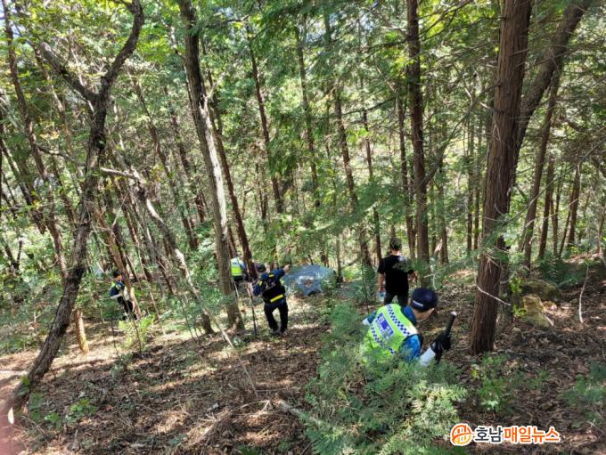 Àå±â ÁÖÂ÷ Â÷·®ÀÇ ¼ÒÀ¯ÀÚ´Â Àü³² ¹«¾È¿¡¼ 3°³¿ù Àü Â÷·®À» Ÿ°í ½ÇÁ¾µÈ ±è¡Û¡Û(47¼¼, ³²)ÀÇ Â÷·®À¸·Î È®ÀεǾú°í, ¼øÃµ°æÂûÀº Ãß¼® ¸íÀý ±â°£ÀÓ¿¡µµ °æÂû¼ÀåÀÇ ÁöÈÖ ¾Æ·¡ °æÂû°ü 25¸í°ú Àü³²°æÂûû Á÷¿øÁß´ë 68¸í ÃÑ 93¸íÀ» µ¿¿øÇÏ¿© Â÷·® ¹ß°ßÁöÁ¡À¸·Î ºÎÅÍ »ê¾Ç ¼ö»öÇÏ¿´À¸¸ç, 9. 19. ¿ÀÀü Â÷·® ¹ß°ßÁöÁ¡À¸·ÎºÎÅÍ 1ų·Î¹ÌÅͰ¡·® ¶³¾îÁø ½£¼Ó ³ª¹«¿¡ ¸ñÀ» ¸Å°í »ç¸ÁÇØ ÀÖ´Â »óÅÂÀÇ ½ÇÁ¾ÀÚ¸¦ ¹ß°ßÇÏ¿´´Ù.