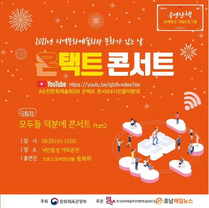 °ø¿¬Àº ³«¾ÈÀ¾¼º ÇöÀå¿¡¼ Á÷Á¢ Áñ±æ ¼ö ÀÖ°í, À¯Æ©ºê ¡®¼øÃµ½Ã ¹®È¿¹¼úȸ°ü¡¯Ã¤³ÎÀ» ÅëÇØ Live ¹æ¼ÛÀ¸·Î ¼ÛÃâµÉ ¿¹Á¤ÀÌ´Ù.