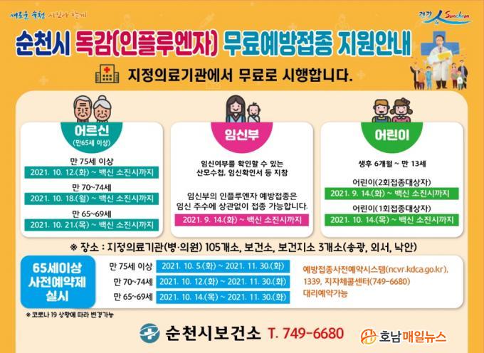 ¸¸ 65¼¼ ÀÌ»ó ¾î¸£½Å°ú ±âÃÊ»ýȰ¼ö±ÞÀÚ, ±¹°¡À¯°øÀÚ µî Á¢Á¾À» Èñ¸ÁÇÏ´Â ½Ã¹ÎÀº ¿¹¹æÁ¢Á¾»çÀü¿¹¾à½Ã½ºÅÛ(ncvr.kdca.go.kr) ¶Ç´Â Äݼ¾ÅÍ(1339, ¼øÃµ½Ã º¸°Ç¼Ò 061-749-6680) ÅëÇØ »çÀü¿¹¾àÇØ¾ß ÇÑ´Ù. ´Ù¸¸, ¾î¸°ÀÌ¿Í Àӽźδ 105°÷ÀÇ ÁöÁ¤ÀÇ·á±â°ü¿¡ ¹æ¹®ÇÏ¸é ¿¹¾à¾øÀÌ ¿¹¹æÁ¢Á¾ÀÌ °¡´ÉÇÏ´Ù.