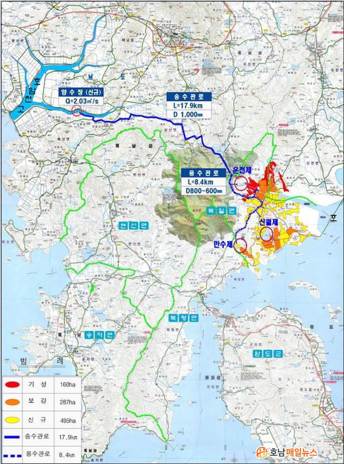 À̹ø »ç¾÷À» ÅëÇØ ¾ç¼öÀå°ú 17kmÀÇ ¼Û¼ö°ü·Î¸¦ ¸Å¼³ÇØ ºÏÀÏ¸é ¿îÀüÀú¼öÁö¿Í ½Å¿ùÀú¼öÁö, ¸¸¼öÀú¼öÁö µî 3°³ Àú¼öÁö¿¡ ¿ë¼ö¸¦ °ø±ÞÇÏ°Ô µÈ´Ù.
