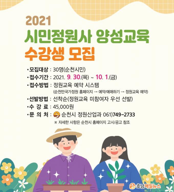 ¼ö°»ý ¸ðÁýÀº ¿À´Â 9¿ù 30Àϰú 10¿ù 1ÀÏ ¾çÀϰ£ ¼øÃµ¸¸±¹°¡Á¤¿ø ȨÆäÀÌÁö ¡®Á¤¿ø±³À° ¿¹¾à½Ã½ºÅÛ¡¯À» ÅëÇØ Á¢¼öÇϸç, ¸ðÁýÀοøÀº 30¸íÀ¸·Î ±âÁ¸ Á¤¿ø±³À°¿¡ Âü¿©ÇÏÁö ¾ÊÀº ¼øÃµ½Ã¹ÎÀ» ¼±Âø¼øÀ¸·Î ¼±¹ßÇÑ´Ù.