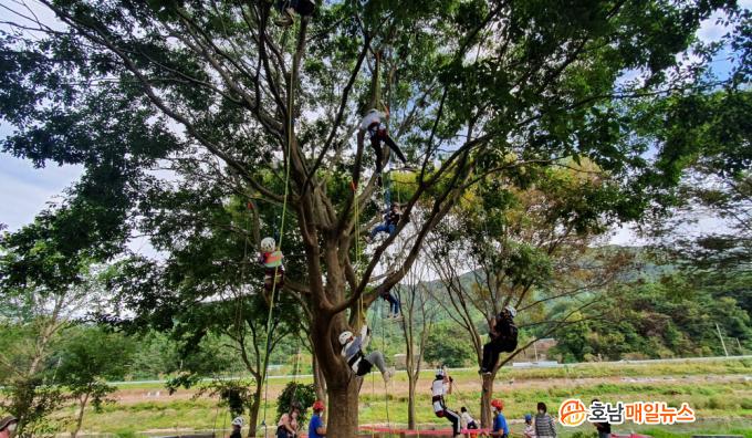 º¸È£Àåºñ¸¦ Âø¿ëÇÏ°í ¸öÇ®±â·Î ¶¥¿¡¼ ³ª¹« °È±â¿Í ³ª¹« ½ºÀ®À» °ÅÃÄ º»°ÝÀûÀ¸·Î ³ª¹«¿¡ ¿Ã¶ú´Ù. Âü°¡ ÇлýÀº ¡°Ã³À½¿¡´Â ³ôÀÌ ¿Ã¶ó°¥¼ö·Ï ¹«¼¿üÁö¸¸ ³ôÀº °¡Áö À§¿¡µµ ¾É¾Æº¸°í Áñ°Å¿òÀÌ ´õ Ä¿¼ ³ª¹«¸¦ 2¹øÀ̳ª ÅÀ¾î¿ä.¡±¶ó°í ¸»Çß´Ù.