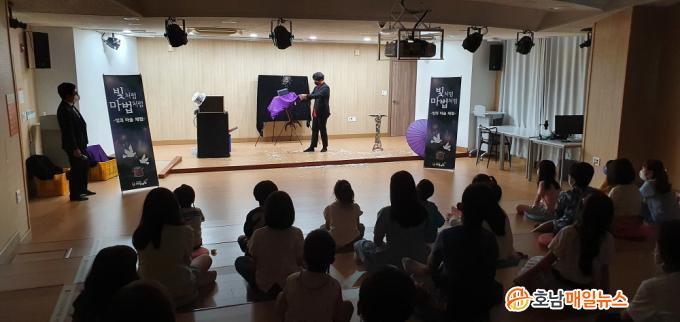 °ø¿¬Àº Äڷγª19 »óȲÀ» °í·ÁÇØ Âü¿© ÀοøÀ» 40¸íÀ¸·Î Á¦ÇÑÇÏ°í ¹ß¿ üũ, ¼Õ ¼Òµ¶ µî ¹æ¿ªÁöħÀ» ÁؼöÇÑ °¡¿îµ¥ ÁøÇàÇßÀ¸¸ç, ºûÀ» ÀÌ¿ëÇÑ ¸¶¼ú °ø¿¬°ú ¾î¸°À̵éÀÌ Á÷Á¢ ¸¶¼úÀ» ¹è¿öº¸°í ºûÀ¸·Î ±×¸²À» ±×¸®´Â üÇè ½Ã°£À¸·Î ¿î¿µÇß´Ù.