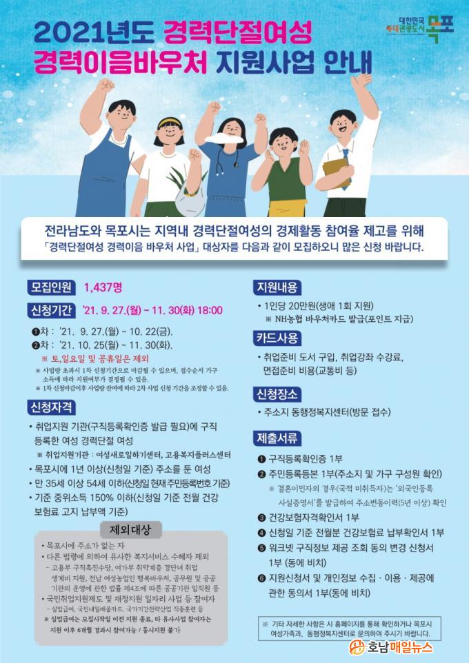 ¸ðÁýÀοøÀº 1,437¸íÀ¸·Î ½Åû ÀÚ°ÝÀº ¸ñÆ÷½Ã¿¡ ½ÅûÀÏ ±âÁØÀ¸·Î 1³â ÀÌ»ó ÁÖ¼Ò¸¦ µÐ ¸¸ 35¼¼ºÎÅÍ 54¼¼ °æ·Â´ÜÀý¿©¼ºÀÌ´Ù. Ãë¾÷Áö¿ø±â°ü(¿©¼º»õ·ÎÀÏÇϱ⼾ÅÍ, °í¿ëº¹ÁöÇ÷¯½º¼¾ÅÍ µî)¿¡ ±¸Á÷µî·ÏÇÏ°í ½ÅûÀÏ ±âÁØ Àü¿ù °Ç°º¸Çè·á°¡ ±âÁØ ÁßÀ§¼Òµæ 150% ÀÌÇÏ¸é ´©±¸³ª ½Åû °¡´ÉÇÏ´Ù.