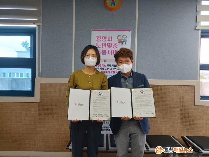 ³ëÀθÂÃãµ¹º½¼ºñ½º»ç¾÷ ¼öÇà±â°üÀÌÀÚ ½Ã Á÷¿µ½Ã¼³ÀÎ ±¤¾ç³ëÀκ¹Áö°üÀÇ 3Ãþ °¡¿ä¹æ¿¡¼ ÁøÇàµÈ Çù¾à½ÄÀº »çȸÀû °Å¸®µÎ±â 3´Ü°è Á¶Ä¡¸¦ °í·ÁÇØ, ¾ÈÀ¯¹Ì °üÀå´Ô°ú ÀÌö ´ëÇ¥´Ô µî ÃÖ¼ÒÀÇ °ü°èÀÚµéÀÌ Âü¼®ÇÑ °¡¿îµ¥ ÁøÇàÇß´Ù.