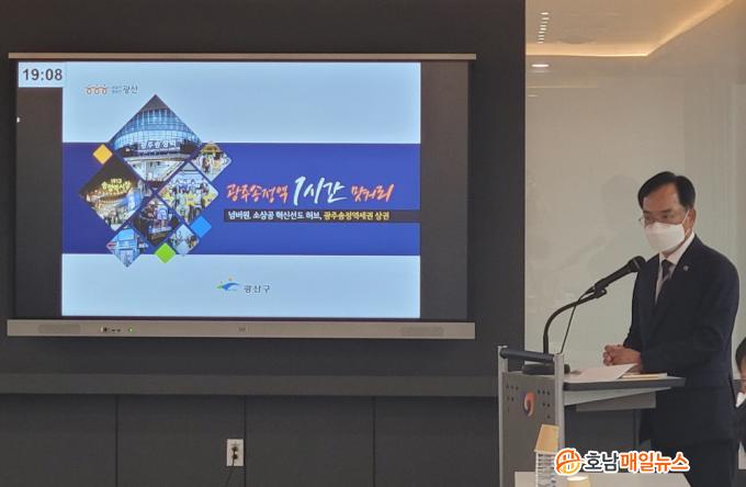±¤»ê±¸´Â 1913¼ÛÁ¤¿ª½ÃÀå~±¤»ê·Î ÀÏ¿ø(ÃѸéÀû 21¸¸5241§³)À» ¿¬°áÇÑ ¡®±¤ÁÖ¼ÛÁ¤¿ª 1½Ã°£ ¸À °Å¸®¡¯ »ç¾÷À¸·Î °ø¸ð¸¦ ½ÅûÇß´Ù. ´ëÇ¥½Ä´ç ¹× »ó°¡(ÇÙÁ¡Æ÷) À¯Ä¡¿Í ´Ù¾çÇÑ ÄÜÅÙÃ÷·Î KTX±¤ÁÖ¼ÛÁ¤¿ª 1ÀÏ À̿밴 2¸¸2000¿© ¸íÀ» ²ø¾îµé¿© ±¤ÁÖÀÇ °ü¹®¿¡ À§Ä¡ÇÑ ¼ÛÁ¤¿ª¼¼±ÇÀ» ¡®±¤ÁÖ ´ëÇ¥ »ó±Ç¡¯À¸·Î Å»¹Ù²Þ½ÃŰ°Ú´Ù´Â Àü·«ÀÌ´Ù.