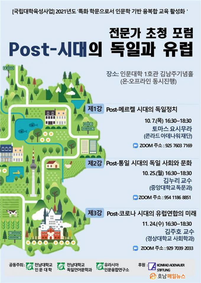 Àü³²´ë µ¶ÀϾð¾î¹®Çаú(ÇаúÀå Á¶ÀÚ°æ)´Â À¯¶ó½Ã¾Æ Àι®À¶ÇÕ¿¬±¸¼Ò(¼ÒÀå ¹ÎÁø¿µ)¿Í ÇÔ²² Äܶóµå ¾Æµ¥³ª¿ö Àç´ÜÀÇ ÈÄ¿øÀ» ¹Þ¾Æ ¿À´Â 10¿ù 7ÀϺÎÅÍ 11¿ù 24ÀϱîÁö ¸ðµÎ 3Â÷·Ê¿¡ °ÉÃÄ ¡®Post-½Ã´ëÀÇ µ¶Àϰú À¯·´¡¯À̶ó´Â ÁÖÁ¦·Î Àü¹®°¡ ÃÊû Æ÷·³À» °¡Áø´Ù.