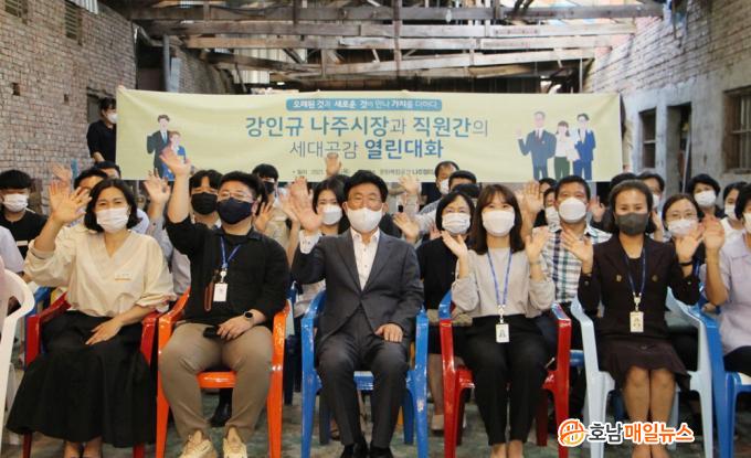 ³ªÁֽô ÃÖ±Ù ³ªÁÖÁ¤¹Ì¼Ò¿¡¼ °ÀÎ±Ô ½ÃÀå°ú À¾¡¤¸é¡¤µ¿ ÆÀÀå ¹× 8~9±Þ °øÁ÷ÀÚ 40¿©¸í°ú ÇÔ²² ÇູÇÑ Á÷Àå¹®È Á¶¼ºÀ» À§ÇÑ ¡®¼¼´ë°ø°¨ ÅäÅ©(talk)¡¯ ÀÚ¸®¸¦ °¡Á³´Ù°í 6ÀÏ ¹àÇû´Ù.