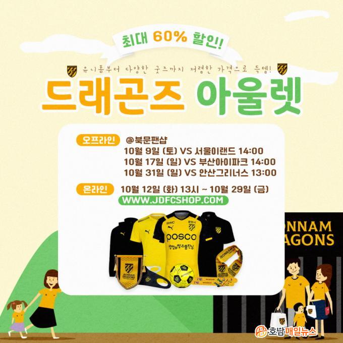 ¿ÀÇÁ¶óÀÎ ¾Æ¿ï·¿Àº 10/9(Åä), 10/17(ÀÏ), 10/31(ÀÏ)¿¡ ¿¸®´Â Àü³²µå·¡°ïÁî Ȩ°æ±âÀÏ¿¡ ±¤¾çÃ౸Àü¿ë±¸Àå ºÏ¹® °ÔÀÌÆ® ¿ÞÆí¿¡ À§Ä¡ÇÑ ÆÒ¼¥¿¡¼ ¿î¿µµÈ´Ù. ¿î¿µ½Ã°£Àº 10/9(Åä)¿Í 10/17(ÀÏ)Àº ¿ÀÈÄ 4½ÃºÎÅÍ ¿ÀÈÄ 6½Ã 30ºÐ, 10/31(ÀÏ)Àº ¿ÀÈÄ 3½ÃºÎÅÍ ¿ÀÈÄ 5½Ã 30ºÐ±îÁöÀÌ´Ù.