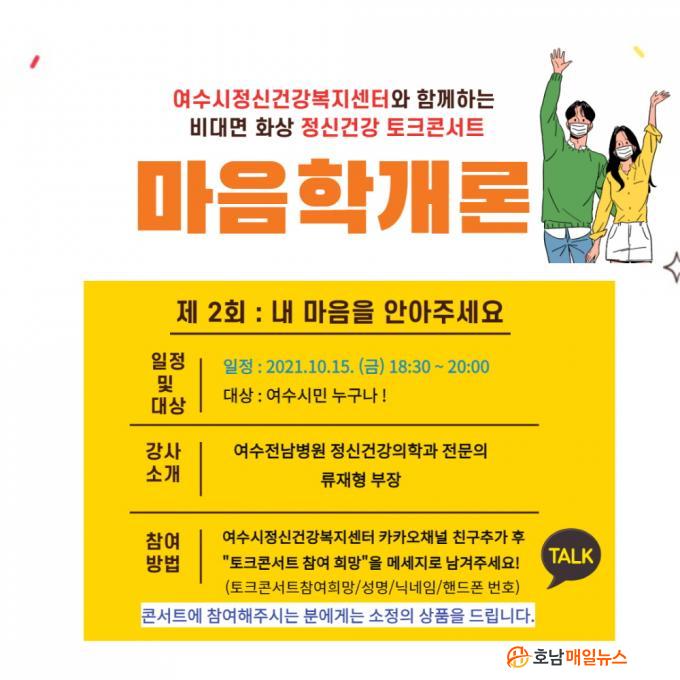 ¿©¼ö½Ã(½ÃÀå ±Ç¿ÀºÀ)´Â ¿©¼ö½Ã¹ÎÀ» ´ë»óÀ¸·Î ¿À´Â 15ÀÏ ¡®¸¶À½Çа³·Ð¡¯ ºñ´ë¸é Á¤½Å°Ç° ÅäÅ©ÄܼƮ¸¦ °³ÃÖÇÑ´Ù°í ¹àÇû´Ù.