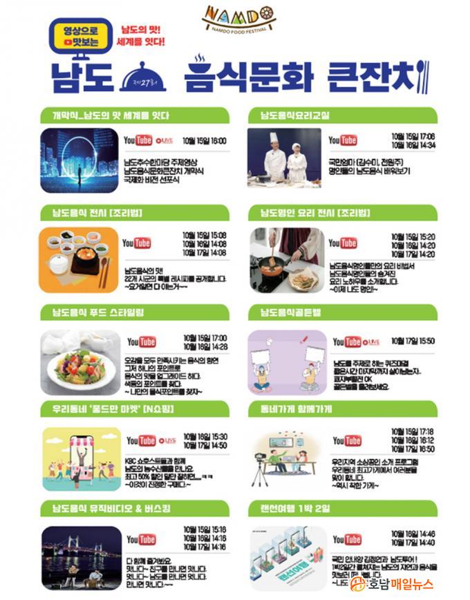 ÀÌó·³ Àç¹Ì¿Í °¨µ¿À» ´ãÀº ¿Â¶óÀÎ ÇÁ·Î±×·¥Àº À¯Æ©ºê ä³Î ¡®³²µµÀ½½Ä¹®ÈÅ«ÀÜÄ¡TV¡¯¸¦ ÅëÇØ Àü ¼¼°è·Î ¿µ»óÀÌ ¼ÛÃâÇÑ´Ù. ÀÌ ¶§¹®¿¡ ¿Ü±¹ÀÎ °ü±¤°´À» °í·ÁÇØ ¿µ¾îÀÚ¸·µµ Áö¿øÇÑ´Ù.