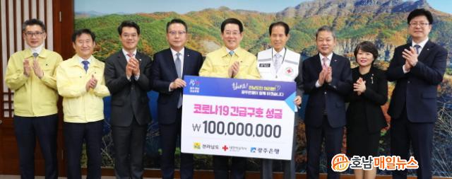 ±è¿µ·Ï Àü¶ó³²µµÁö»ç´Â ¡°¿ì¸® Áö¿ªÀÇ Áß¼Ò±â¾÷°ú ¼Ò»ó°øÀÎ µîÀ» À§ÇØ Å« ¿ªÇÒÀ» Çϰí ÀÖ´Â ±¤ÁÖÀºÇàÀÌ Äڷγª19 ±Øº¹À» À§ÇØ ¼º±ÝÀ» ±âÅ¹ÇØ Áà ¸Å¿ì °¨»çÇÏ´Ù¡±¸ç ¡°Àü³²µµ¿Í µµ¹ÎµéÀÌ ¾î·Á¿î »óȲÀ» ÇÔ²² ±Øº¹Çϴµ¥ Å« µµ¿òÀÌ µÉ °ÍÀÌ´Ù¡±°í ¸»Çß´Ù.