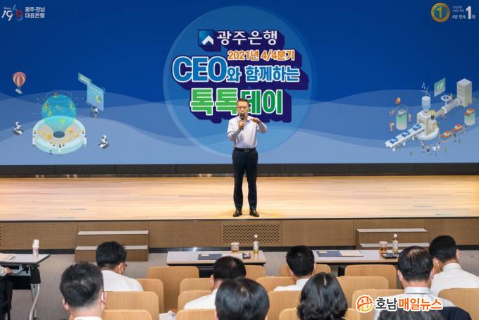 ¼ÛÁ¾¿í ±¤ÁÖÀºÇàÀåÀº ¡°Äڷγª19 Àå±âÈ¿Í ´ëÃâ±ÔÁ¦ °È, ºòÅ×Å© ±â¾÷ÀÇ °ø°Ý µî °æ¿µÈ¯°æÀÇ ±Þ°ÝÇÑ º¯È°¡ ¿ì·ÁµÇ´Â 4ºÐ±â »óȲ¿¡ ´ëÀÀÇØ °ÇÀü¼º °ü¸® °È, ÀÚ»êÆ÷Æ®Æú¸®¿À Á¡°Ë, µðÁöÅÐ °æÀï·Â È®º¸ µî ¼±Á¦Àû ´ëÀÀÀü·«À» ¸¶·ÃÇϰí, ±ÝÀ¶½ÃÀå Àü¹ÝÀÇ ±¸Á¶º¯È¿Í ±× ´ë»óÀÎ °í°´ÀÇ º¯È¿¡ ¸ÂÃç º¯È¿Í Çõ½ÅÀ» °ÅµìÇØ ³ª°¡¾ß ÇÑ´Ù¡±¸ç, ¡°Æ¯È÷ Áö¿ª¹ÐÂø°æ¿µ°ú Æ÷¿ë±ÝÀ¶ ½ÇõÀ¸·Î ±¤ÁÖ¡¤Àü³² ´ëÇ¥ÀºÇàÀÇ Áö¿ª ±ÝÀ¶ ¹ßÀü ¿ªÇÒ¿¡ Ãæ½ÇÇϸ鼵µ ÇÉÅ×Å© ¹× ºòÅ×Å© ±â¾÷ÀÇ ±ÝÀ¶»ê¾÷ ÁøÃâ µî Ä¡¿ÇØÁø °æÀïȯ°æ¿¡ ´ëÀÀÇÏ´Â µðÁöÅÐ Çõ½ÅÀ» ¼±µµÇØ ³ª°¨À¸·Î½á Áö¼Ó°¡´ÉÇÑ 100³â ÀºÇàÀ¸·Î ¼ºÀåÇØ ³ª°¡ÀÚ¡±°í ¸»Çß´Ù.