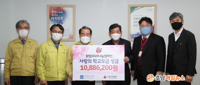 À̹ø »ç¶ûÀÇ Çб³¸ð±Ý ¼º±ÝÀº ¡®Èñ¸Á 2020 »ç¶ûÀÇ Çб³¸ð±Ý Ä·ÆäÀΡ¯ ±â°£(2019³â11¿ù~2020³â2¿ù) µ¿¾È ±¤ÁÖ °ü³» 40°³ Çб³ÀÇ ±³Á÷¿ø°ú ÇлýµéÀÌ Àú¼ÒµæÃþ ÇлýµéÀ» µ½±â À§ÇÑ ¸¶À½À¸·Î Âü¿©ÇØ ÃÑ 1088¸¸6200¿øÀÌ ¸ð±ÝµÆ´Ù. ¸ðÀÎ ¼º±ÝÀº ±¤ÁÖ»çȸº¹Áö°øµ¿¸ð±Ýȸ¸¦ ÅëÇØ ±¤ÁÖÁö¿ª Áß‧°íµîÇлý(Àú¼Òµæ°¡Á¤)ÀÇ ±³º¹ ±¸ÀÔºñ·Î Áö¿øµÉ ¿¹Á¤ÀÌ´Ù.