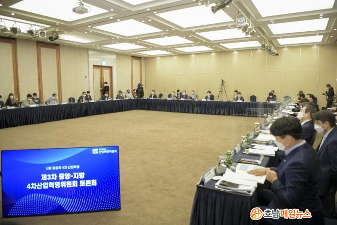 ´ëÅë·ÉÁ÷¼Ó 4Â÷»ê¾÷Çõ¸íÀ§¿øÈ¸(ÀÌÇÏ 4Â÷À§, À§¿øÀå ±èºÎ°â¡¤À±¼º·Î)ÀÇ ÇùÁ¶·Î ÁøÇàµÈ À̹ø Áß¾Ó-Áö¹æ 4Â÷À§°£ Åä·Ðȸ´Â À±¼º·Î À§¿øÀåÀ» ºñ·ÔÇØ ±¤¿ª½Ã¡¤µµ 4Â÷À§ ¹Î°£À§¿øÀå µîÀÌ Âü¼®ÇØ ±×°£ÀÇ 4Â÷»ê¾÷Çõ¸í °ü·Ã Á¤Ã¥ÀÇ ¼º°ú¿Í Áö¿ª±ÕÇü µðÁöÅÐ ´ºµôÀÇ ¼º°øÀ» À§ÇÑ °úÁ¦¿¡ ´ëÇØ °ÝÀÇ ¾ø´Â Åä·ÐÀÌ ÀÌ·ç¾îÁ³´Ù.