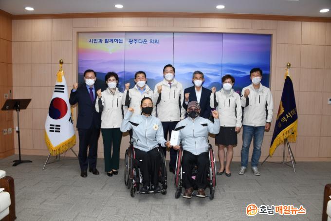 [È£³²¸ÅÀÏ´º½º] ±¤ÁÖ±¤¿ª½ÃÀÇȸ(ÀÇÀå ±è¿ëÁý)´Â 18ÀÏ ±¤ÁÖ±¤¿ª½ÃÀÇȸ ¿¸°½Ã¹ÎȦ¿¡¼ Á¦41ȸ Àü±¹Àå¾ÖÀÎüÀ°´ëȸ¿¡ ÃâÀüÇÏ´Â ±¤Áֽà ¼±¼ö´ÜÀ» °Ý·ÁÇÏ¸ç ±¤ÁÖÀÇ À§»óÀ» ³ô¿© ´Þ¶ó°í ´çºÎÇß´Ù.