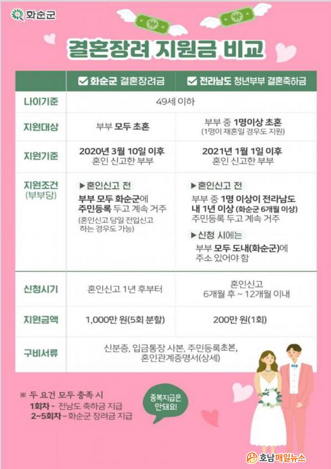 Áö¿ø ´ë»óÀº 2021³â 1¿ù 1ÀÏ ÀÌÈÄ È¥ÀÎ ½Å°íÇÑ ¸¸ 18¼¼ ÀÌ»ó 49¼¼ ÀÌÇÏ Ã»³â ºÎºÎ·Î ÇѸí ÀÌ»óÀÌ ÃÊÈ¥À̰í, È¥ÀνŰíÀÏ ±âÁØ ºÎºÎ Áß ÇÑ ¸íÀÌ Àü¶ó³²µµ ³» 1³â(ȼø±º¿¡ 6°³¿ù) ÀÌ»ó ÁÖ¼Ò¸¦ µÎ°í ÀÖ¾î¾ß ÇÑ´Ù.