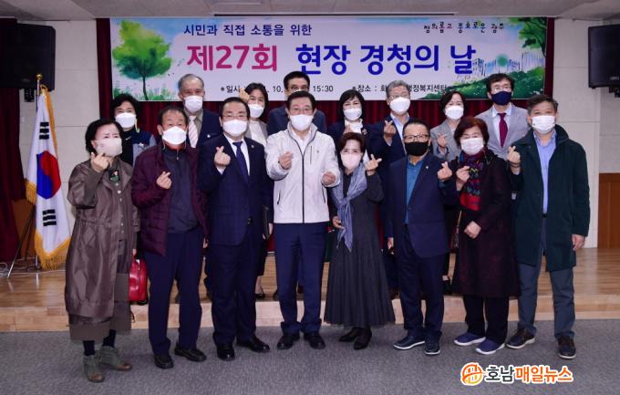 ¡®ÇöÀå °æÃ»ÀÇ ³¯¡¯ Çà»ç¿¡´Â À̿뼷 ½ÃÀå, ¼´ë¼® ¼±¸Ã»Àå, ¼ÛÇüÀÏ ½ÃÀÇ¿ø, °í°æ¾Ö¡¤±è¿µ¼± ¼±¸ÀÇȸ ÀÇ¿ø, Áö¿ª ÁֹΠ20¿© ¸íÀÌ Âü¼®ÇÑ °¡¿îµ¥ ¼Á¤ÈÆ ½Ã¹Î±ÇÀÍÀ§¿øÀå »çȸ·Î ÁøÇàµÆ´Ù.