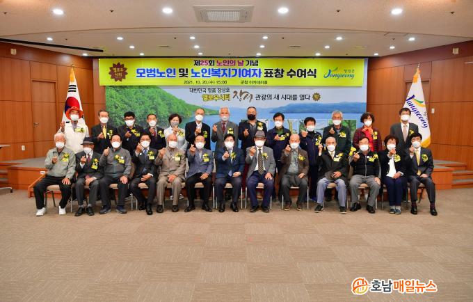 ǥâ ´ë»óÀÚ´Â ¸ð¹ü³ëÀÎ 12¸í(µµÁö»ç ǥâ 1¸í Æ÷ÇÔ)°ú ³ëÀκ¹Áö ±â¿©ÀÚ 11¸íÀ¸·Î, ÃÑ 23¸íÀÌ ¼±Á¤µÆ´Ù. ´Ü»ó¿¡ ¿À¸¥ À¯µÎ¼® À强±º¼ö´Â ¼ö»óÀÚ ÇÑ ¸í ÇÑ ¸í¿¡°Ô ǥâÀ» Àü´ÞÇÏ°í °¨»ç Àλ縦 ³ª´³´Ù.