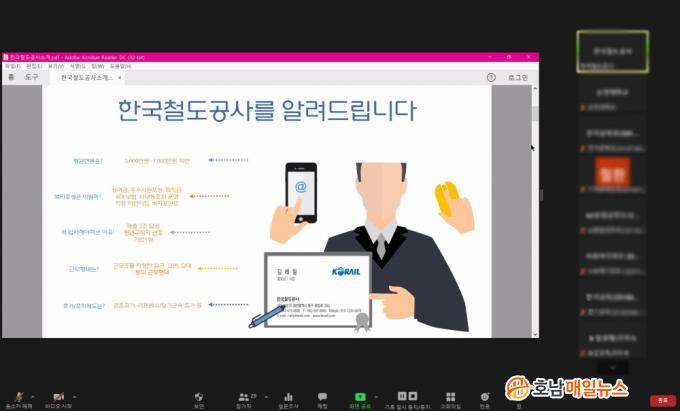 À̹ø ¿Â¶óÀΠä¿ë¼³¸íȸ´Â Çѱ¹Ã¶µµ°ø»ç ±¤ÁÖÀü³²º»ºÎ¿¡¼ Áö¿ªÀÇ ´ëÇлýÀ» ´ë»óÀ¸·Î Çѱ¹Ã¶µµ°ø»çÀÇ Á÷¹«ÀÌÇØ ±âȸ Á¦°ø ¹× û³â Ãë¾÷¿ª·® °È Áö¿øÀ» À§ÇØ ½Ç½ÃµÇ¾ú´Ù.