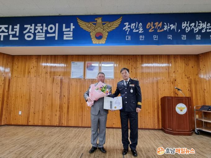 ±èÀç±Ô Àü³²°æÂûûÀåÀº ¡°Á¦76Áֳ⠰æÂûÀÇ ³¯À» ¸Â¾Æ ½ÇÁ¾»ç°Ç ÇØ°á¿¡ µµ¿òÀ» ÁÖ¾î »çȸ ¾ÈÀü°ú Ä¡¾È È®º¸¿¡ ±â¿©ÇØÁֽŠ¹Ú¼º±â ÁÖ¹«°ü´Ô²² Àü³²°æÂûÀ» ´ëÇ¥ÇÏ¿© °¨»çÀÇ ¸»¾¸À» µå¸°´Ù¡±°í ÀüÇß´Ù.