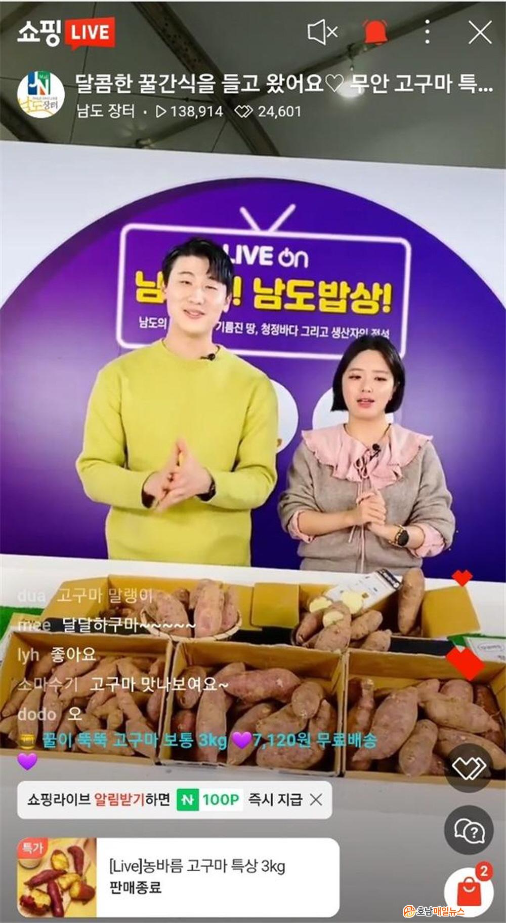 Àü³²µµ´Â ¶Ç ³²µµÀåÅÍ¿¡¼ ÆÇ¸ÅÇÏ´Â ³ó¼öÃà»ê¹°À» 29ÀϱîÁö ³×À̹ö ¼îÇÎ ¶óÀ̺꿡¼ ÆÇÃËÇÑ´Ù. Áö³ 25ÀÏ Ã¹ ÁøÇàÇÑ ¶óÀ̺êÄ¿¸Ó½º ¹æ¼Û¿¡¼± ¹«¾È À¯±â³ó °í±¸¸¶ 900¼¼Æ®°¡ Àü·® ¿ÏÆÇÀ» ±â·ÏÇß´Ù.