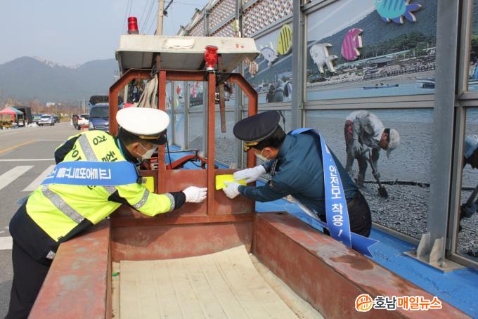 À̳¯ ÇØ³²°æÂû¼´Â ¼öȮö °æ¿î±â µî ³ó±â°è ¹× ÀÌ·ûÂ÷ÀÇ »ç¿ëÀÌ ¸¹¾ÆÁü¿¡ µû¶ó ³²Ã¢ 5ÀϽÃÀåÀ» ¿Õ·¡ÇÏ´Â ¾î¸£½Å ´ë»óÀ¸·Î ¾ÈÀü¸ð ¾º¿öµå¸®±â, °æ¿î±â ¹Ý»çÁö ºÎÂø, Çü±¤Á¶³¢ µî ±³Åë¾ÈÀü ¹°Ç°À» Àü´ÞÇÏ¸ç ±³Åë¹ý±Ô Áؼö¿Í ÇÔ²² ¾ÈÀü¿îÇà ½ÇõÀ» ´çºÎÇß´Ù.