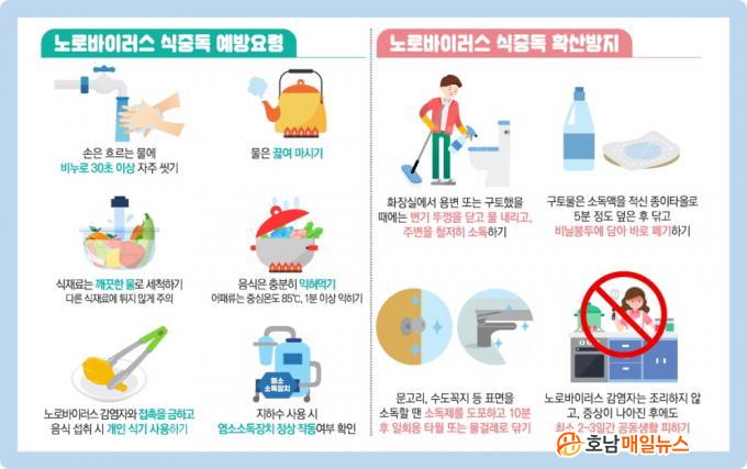 ÇÑÆí, ¿©¼ö½Ã °ü°èÀÚ´Â ³ë·Î¹ÙÀÌ·¯½º ½ÄÁßµ¶À» ¿¹¹æÇϱâ À§ÇØ ¡°¿Ã¹Ù¸¥ ¼Õ ¾Ä±â »ýȰÈ, ½ÄÀç·á´Â ±ú²ýÇÑ ¹°·Î ¼¼Ã´, À½½ÄÀº ÃæºÐÈ÷ ÀÍÇô ¸Ô±â, ±¸Åä, ¼³»ç Áõ»ó ½Ã Á¶¸®ÇÏÁö ¾Ê±â, ±¸Åä¹° ¹× ÁÖº¯ ȯ°æ ¼Òµ¶ÇÏ±â µî ³ë·Î¹ÙÀÌ·¯½º ¿¹¹æ¼öÄ¢À» ½ÇÃµÇØ ÁÙ °Í¡±À» ´çºÎÇß´Ù.