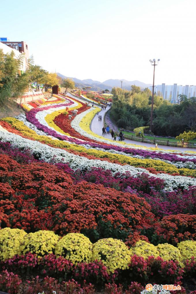 ³²»ê°ø¿ø µ¿»êÀÇ °î¼±À» µû¶ó ÆîÃÄÁø ±¹È²ÉÀÇ Àý°æ¿¡ ¹æ¹®°´µéÀÇ ¾ó±¼¿¡µµ ¿ôÀ½²ÉÀÌ Æñ´Ù.